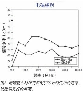 金屬外殼主要通過(guò)能量反射來(lái)提供EMI保護(hù)。當(dāng)多余的能量來(lái)自外殼外部時(shí),這是一個(gè)優(yōu)勢(shì)。當(dāng)外殼內(nèi)的電子設(shè)備輻射EMI時(shí),能量可被反射進(jìn)入電子設(shè)備,而不是消除。在另一方面,復(fù)合材料的外殼,提供了反射和吸收的結(jié)合。內(nèi)部電子輻射的能量被復(fù)合材料吸收和消散了。如圖3所示,在EMI測(cè)試中,以及在現(xiàn)實(shí)世界的表現(xiàn)上,復(fù)合材料可能比金屬的性能好。 copyright 123456