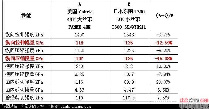 對(duì)了。在此,順便解釋一個(gè)有朋友問(wèn)過(guò)兵器迷的問(wèn)題,就是大家經(jīng)常聽說(shuō)的T300,T800這些碳纖維究竟是什么意思。其實(shí),就是以日本東麗公司TORYA的首字母命名的碳纖維原絲的品級(jí)。 123456