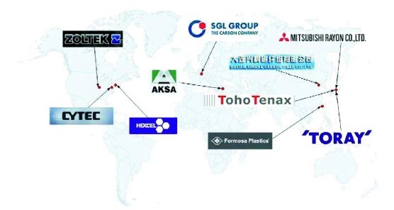 圖3:全球主要碳纖維廠商分布