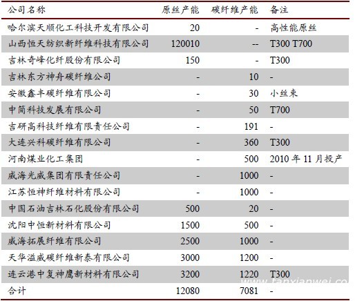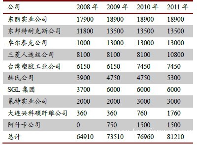 表1:全球主要碳纖維廠商產(chǎn)能統(tǒng)計(jì)