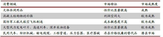 表2:我國(guó)碳纖維具體消費(fèi)領(lǐng)域特征分析