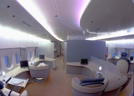 空中客車A380的機艙配備了為客機研發(fā)的最先進的機上娛樂系統(tǒng),光纖配電網(wǎng)絡(luò)使電影、視頻游戲和電視節(jié)目的選擇更加靈活完備。在飛機上乘客還 可以使用便攜式計算機和打電話。有更多的開放空間,比如商務(wù)中心。底艙可選擇為設(shè)置休息區(qū)、商務(wù)區(qū)、酒吧或其它的娛樂區(qū),按照不同航空公司的需求,還可安 排其它設(shè)施,如理發(fā)店、臥鋪、賭場、按摩室或兒童游戲場。寬大的空間可供頭等艙內(nèi)安排私人套間,甚至包括淋浴設(shè)施的浴室。 123456