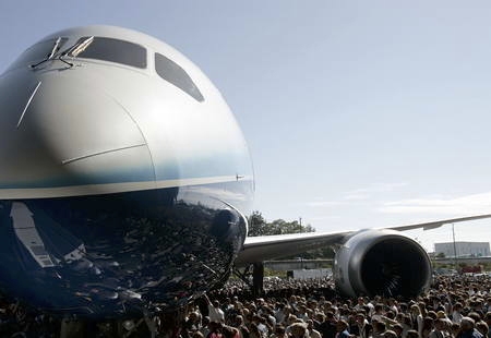 波音787(Dreamliner)中型雙發(fā)(動機)寬體中遠程運輸機,是波音公司(Boeing Co.)1990年啟動波音777計劃后14年來推出的首款全新機型,由波音民用飛機集團(BCA)負責(zé)開發(fā),在2004年4月正式啟動。經(jīng)多次延期后,于美國時間2009年12月15日成功試飛,標(biāo)志著波音787飛機的制造項目進入交付使用前最后一個階段,預(yù)計2010年交付使用。2011年9月27日零時20分,波音787“夢想飛機”交付全日本航空運輸公司(All Nippon Airways Co.,簡稱“全日空”),預(yù)計2012年中旬中國將迎來自己的波音787。 123456