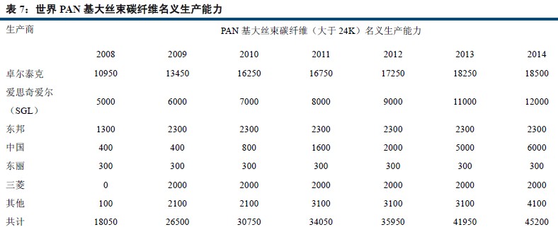 預(yù)計(jì)大絲束碳纖維高于小絲束碳纖維