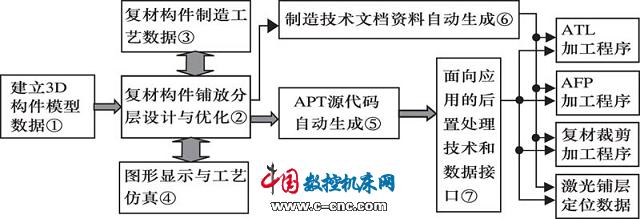 後置處理技術(shù)和數(shù)據(jù)接口是面向具體工業(yè)應(yīng)用開(kāi)發(fā)的後置處理軟件,能夠針對(duì)具體應(yīng)用將APT源代碼處理成對(duì)應(yīng)的加工程序,并可通過(guò)相應(yīng)數(shù)據(jù)接口傳送到具體制造設(shè)備中,實(shí)現(xiàn)了零件從3D模型(產(chǎn)品設(shè)計(jì))、工藝規(guī)劃到加工制造的無(wú)縫集成,提升了復(fù)材整體構(gòu)件制造自動(dòng)化水平,縮短了構(gòu)件制造周期。