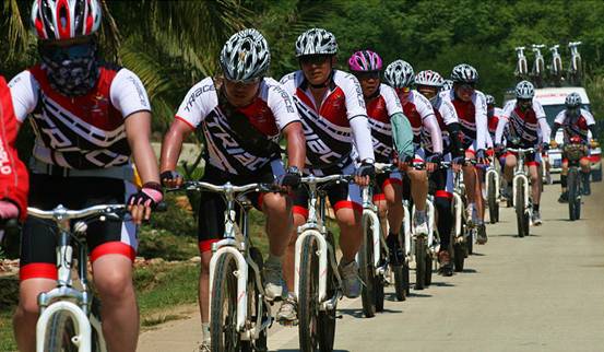 起源于美國的世界地球日是一項世界性的環(huán)境保護運動,每年的4月22日都有眾多環(huán)保愛好者加入其中,中國于20世紀90年代開展此項活動。為了迎接今年地球日的到來,同時倡導(dǎo)和推廣低碳出行、時尚健康的生活理念,讓更多都市人感受到騎車的樂趣,2011年4月9日,由TRIACE(騅馳)舉辦的大型系列騎游活動“《大美騅騎 中國之旅》之四海車友環(huán)海南活動“已于??趩⒑?, 50多名騎行愛好者迎著海風(fēng),聽著海浪聲快樂出發(fā)。