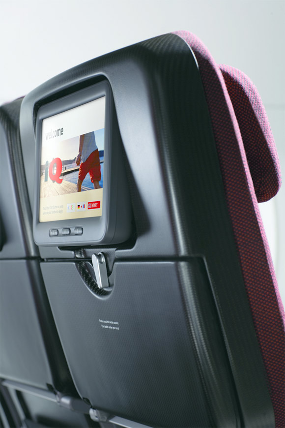 These carbon fiber backshells are exclusive to Qantas, they chose material for its sleek design appeal and weight benefits. Here’s another picture up-close: 本文來自123