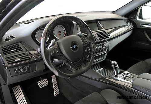 寶馬X6 M的車內(nèi)部分,方向盤以及儀表臺等碳纖維處處可見,凸顯大廠風格。