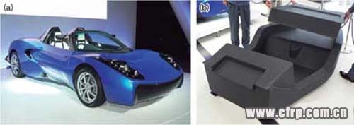 富士重工業(yè)2011年發(fā)售的400輛限量車型“翼豹WRX STItS”的車頂就使用了VaRTM工藝〔圖3(a)〕。據(jù)該公司介紹,在小批量生產(chǎn)時(shí),因不需要制造模具,所以模具費(fèi)用低于RTM。
