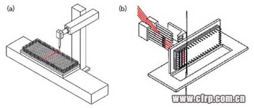 (a)由纏繞在四周豎起的紡針上制造纖維片的裝置,以及(b)沿著厚度方向插入纖維絲的裝置構(gòu)成??芍圃旌穸葹?0mm以上的織物。 內(nèi)容來自123456
