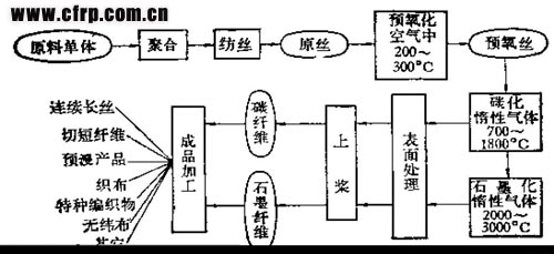 圖1:碳纖維主要生產(chǎn)工藝流程圖