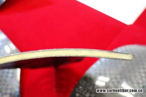 工業(yè)用換氣扇葉片的截面。這是一種用CFRP夾入輕量樹脂的復(fù)合材料。