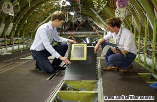在客機(jī)結(jié)構(gòu)中采用碳纖維復(fù)合材料,不僅可以減輕機(jī)身重量,其本身亦發(fā)揮了重要的承力作用。波音新款787夢想客機(jī)和空客A350的機(jī)體結(jié)構(gòu)用的幾乎全是碳纖維。在一些關(guān)鍵承力部位,像龍骨梁(keel beam)、后部隔框(rear bulkhead)、中央翼盒(center wing box),碳纖維也在發(fā)揮著愈加重要的作用。