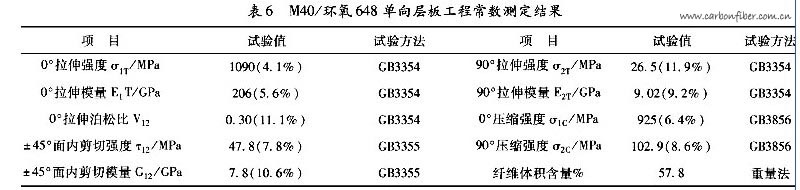由于天線反射面必須能夠反射電磁波,蜂窩夾層結(jié)構(gòu)復(fù)合材料中面板材料必須由導(dǎo)電材料制成。碳纖維具有良好的導(dǎo)電性能,且具有良好的力學(xué)性能沿高模量碳纖維軸向的熱膨脹系數(shù)為-0.7x10-6/℃,而其垂直于纖維方向的熱膨服系數(shù)為23x10-6/℃。它具有明顯的各向異性特點,可通過工藝設(shè)計,滿足各種天線反射面的性能要求。實踐表明碳纖維是天線反射面面板材料的理想選擇之一。Kevlar-49纖維同樣具有良好的力學(xué)性能,從結(jié)構(gòu)性能角度考慮也是天線面板材料的理想選擇。但由于其不導(dǎo)電,當(dāng)用于天線反射面時,必須對其反射表面進行金屬化處理。由此可知,天線反射面的結(jié)構(gòu)設(shè)計與所用材料性能有著密切的關(guān)系。選用不同的材料會使天線反射面的結(jié)構(gòu)特性有很大的差異,為了滿足C波段天線結(jié)構(gòu)的設(shè)計要求,在進行了大量的材料性能試驗的前提下,最終選用材料的性能測試結(jié)果列于表1至表5中。