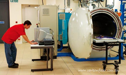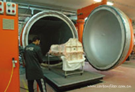 預浸料/熱壓罐成型工藝的優(yōu)點是:施工簡便,對工人的技能要求不高,生產效率高,制品質量穩(wěn)定且強度高,因此,該工藝已成為汽車結構件的主流生產技術。需要說明的是,在熱壓罐中固化成型的制品與在固化爐中成型的制品相比,其致密性更高。這是因為熱壓罐可同時加熱加壓,其施加的壓力通常為2~3個大氣壓,而固化爐則不能施壓,這使得在熱壓罐中成型的制品具有更高的致密度,其強度性能更好,因而更適合于主結構件的成型。對于次結構件而言,固化爐成型完全可滿足其強度和質量要求。當然,熱壓罐的成本幾乎為固化爐的2~3倍。