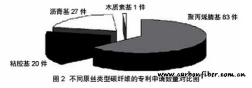 圖2 不同原絲類型碳纖維的專利申請(qǐng)數(shù)量對(duì)比圖