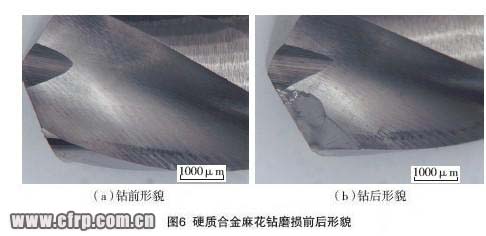 硬質(zhì)合金麻花鉆的耐磨性較差,使用壽命較短。而釬焊金剛石套料鉆的耐磨性較強(qiáng),使用壽命較長,是加工CFRP 材料良好刀具。