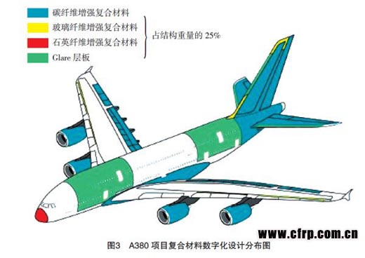 空客公司在整個(gè)A350 XWB項(xiàng)目、A380復(fù)合材料項(xiàng)目中完成了對(duì)所有復(fù)合材料零件的CATIA平臺(tái)設(shè)計(jì),并使用復(fù)合材料設(shè)計(jì)模塊完成數(shù)字化的設(shè)計(jì)制造任務(wù)。以空客A380(圖3)為例:其復(fù)合材料用量占到結(jié)構(gòu)重量的25%,機(jī)身段、尾翼段、襟副翼的設(shè)計(jì)制造都是采用CPD模塊對(duì)設(shè)計(jì)制造流程進(jìn)行優(yōu)化??湛凸镜墓こ處熡肅ATIA定義模具面、層的位置和邊界、泡沫夾芯的位置等。CPD軟件將層管理起來,為每個(gè)層自動(dòng)生成表格,記錄非幾何信息與層的邊界、相關(guān)的標(biāo)記等聯(lián)系起來,確保層在制造過程中能正確定位。CPD的文檔功能,生成鋪層圖、鋪層表、材料表和序列表,從而使空客的復(fù)合材料設(shè)計(jì)工作時(shí)間降低了約50%,采用了新技術(shù)和軟件設(shè)計(jì)制造復(fù)合材料部件后,空客公司節(jié)省了5%~25%的初始設(shè)計(jì)時(shí)間,減少了45%的反復(fù)設(shè)計(jì)修改時(shí)間,極大地降低了手工鋪層的時(shí)間,達(dá)到了全過程控制復(fù)合材料鋪層,消除了反復(fù)試驗(yàn)的過程,提高產(chǎn)品質(zhì)量的同時(shí)最大限度地降低了產(chǎn)品的廢品率。