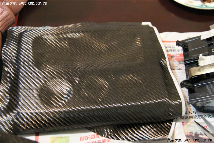 覆蓋碳纖維布的時(shí)候要注意,不能用手指用力按表面,否則碳纖維布的纖維很容易被弄亂,弄亂了就不好玩了。。。