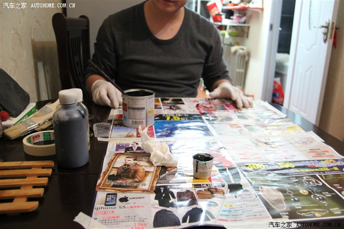 四十分鐘之后,可以開始刷膠了,帶上手套吧,黑膠弄到手上很難清理的。