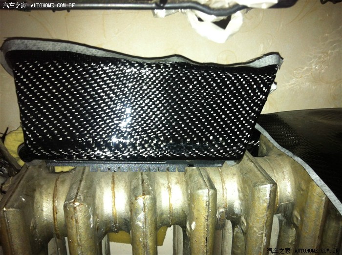 正確的方法是,用手掌輕輕按壓,確保碳纖維布和被覆蓋件的表面完全接觸上,四件都蓋好之后,今天的工作就可以結(jié)束了,把這四件放到暖氣上就可以收工。(東北冬天就這點(diǎn)好,室內(nèi)有暖氣)