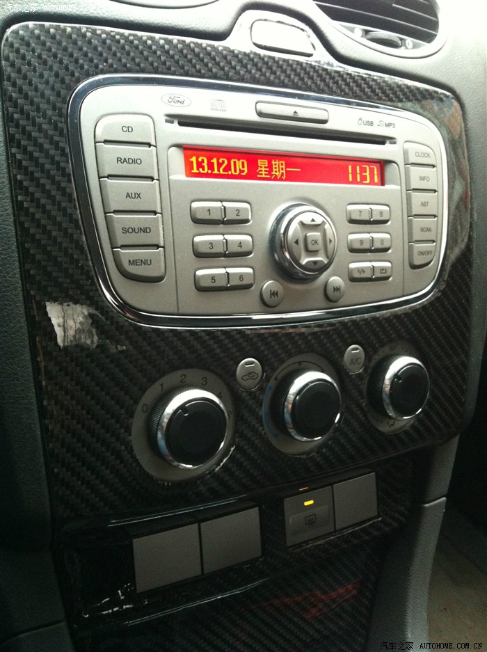 為了配合碳纖維的顏色,我又在網(wǎng)上買了空調(diào)旋鈕的改裝件,安裝上之后,感覺不錯(cuò)。